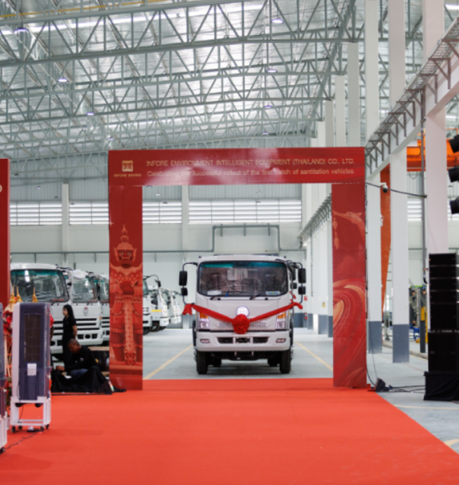 随着BG视讯环境副总裁兼装备事业部总裁焦万江一声指令,泰国工厂首批环卫装备隆重下线,将现场气氛推至高潮。这批环卫装备的成功下线不仅标志着泰国工厂正式步入生产运营的快车道,更是中泰双方共同努力的结晶和新征程的起点。BG视讯环境将以此为契机,不断提升产品质量和生产效能,持续攀登行业高峰。